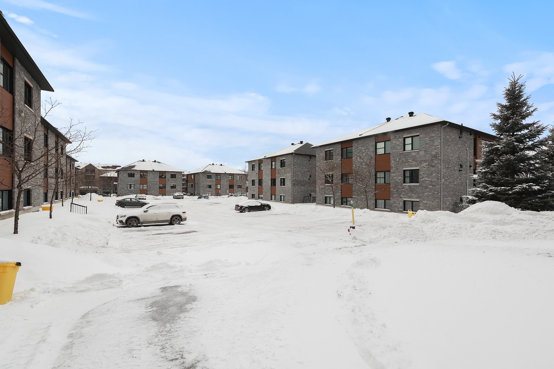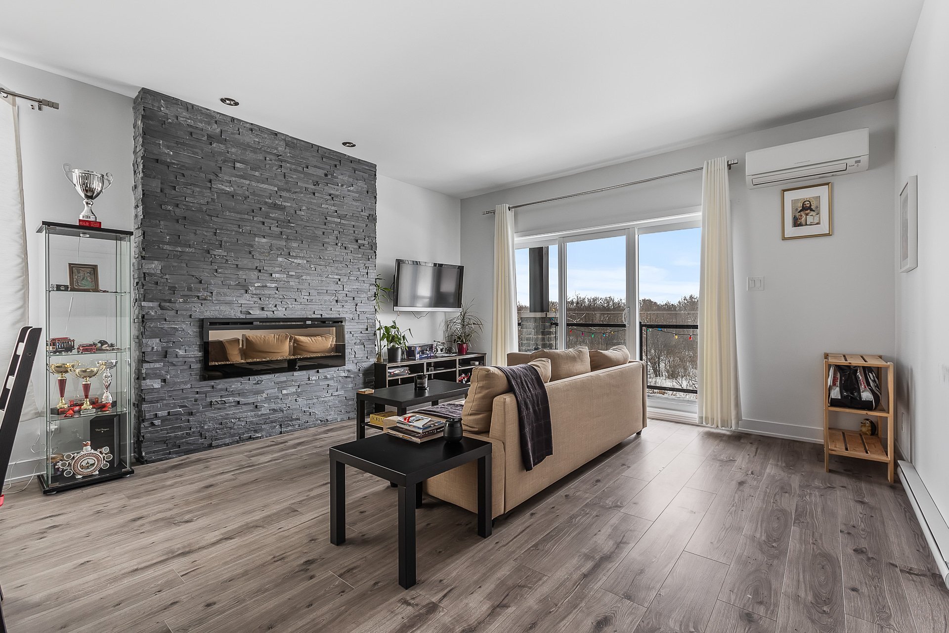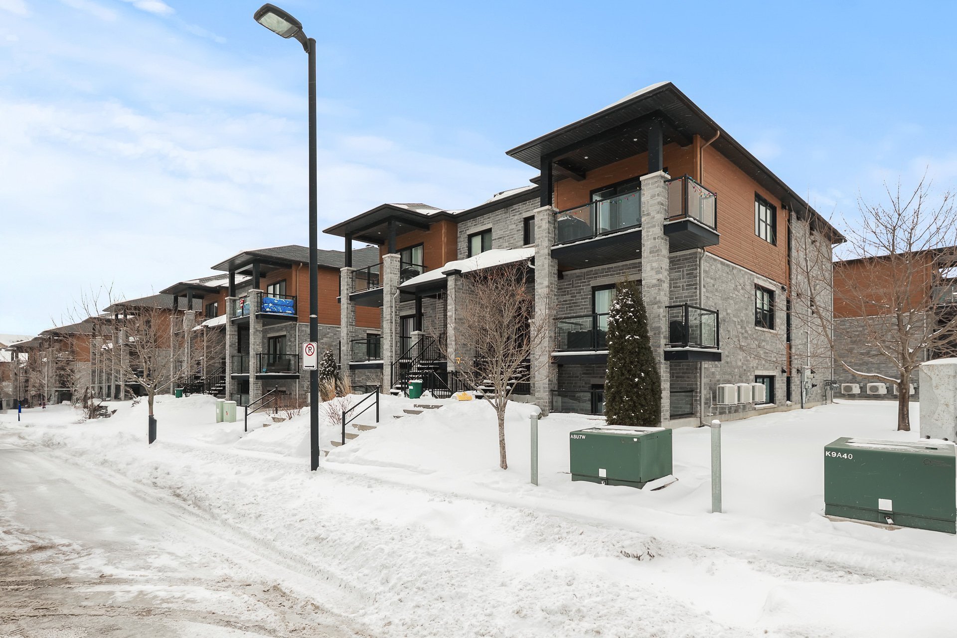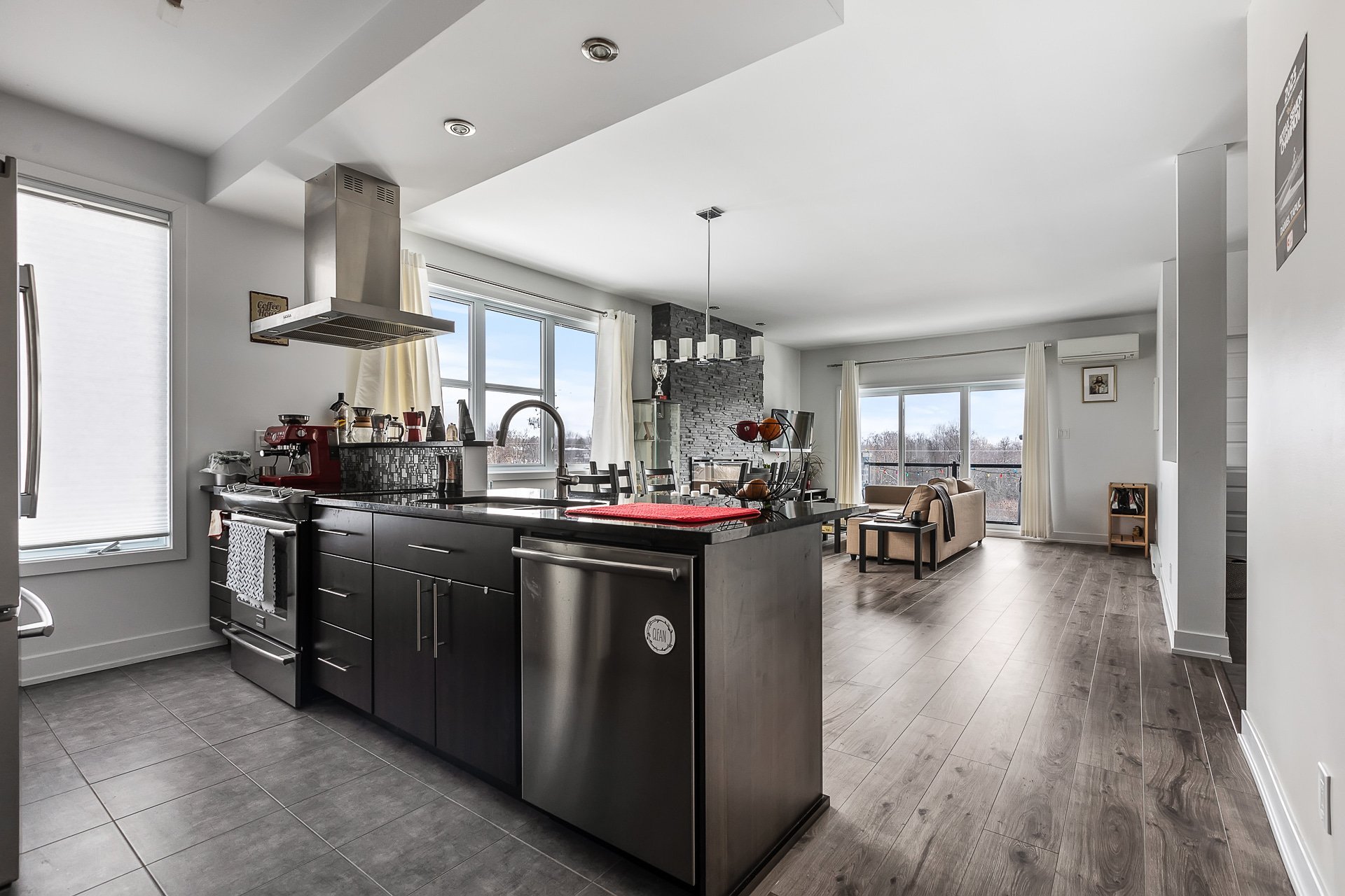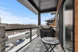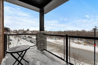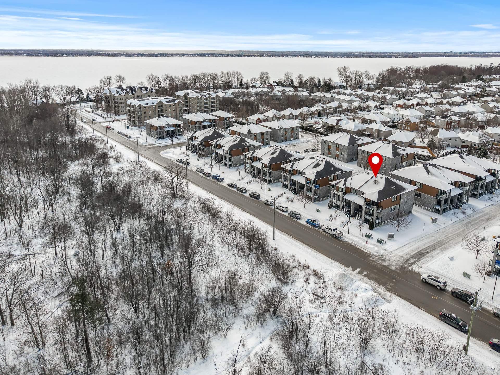 Unité de coin au 3e étage avec 2 chambres à coucher + bureau. Profitez des couchers de soleil sur le balcon, d'une promenade le long de la rivière des Outaouais ou simplement de l'intimité qu'offre cette unité sans voisin avant. Vous serez charmé par son intérieur lumineux et à aire ouverte, donnant sur un foyer encastré avec mur de briques et plafonds de 9". La cuisine offre un comptoir en quartz ainsi qu'un vaste garde-manger avec beaucoup de rangement. Spacieuse chambre des maîtres avec walk-in. Beaucoup d'inclusions dont les électroménagers et la possibilité d'être meublé. Un stationnement et rangement extérieur. À proximité des services!